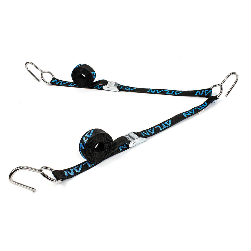 Heavy duty double straps designed to secure the front or rear of a boat to fixed or removable hood anchors.